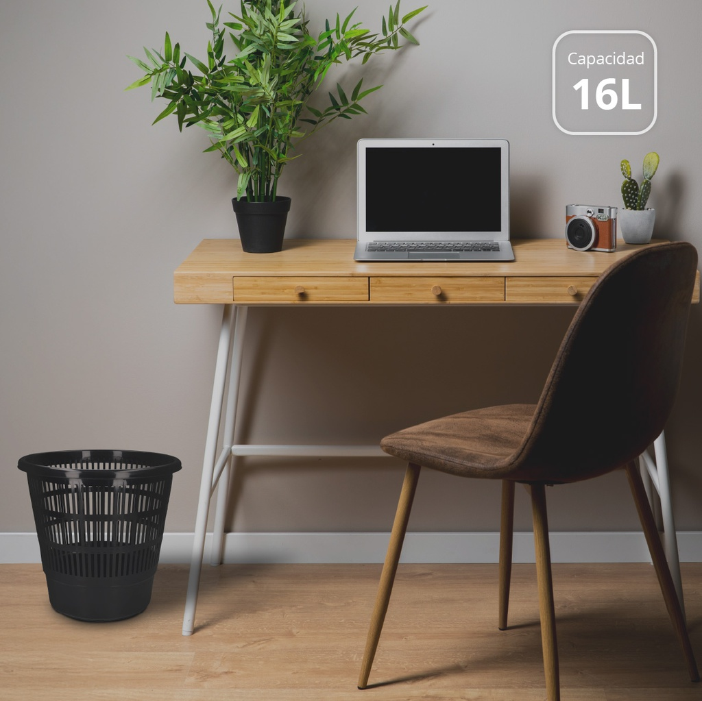 Coloca nuestra Papelera Rejilla 16 Litros de color negro en tu casa, oficina, o cualquier lugar. Además sirve para reciclar basura.