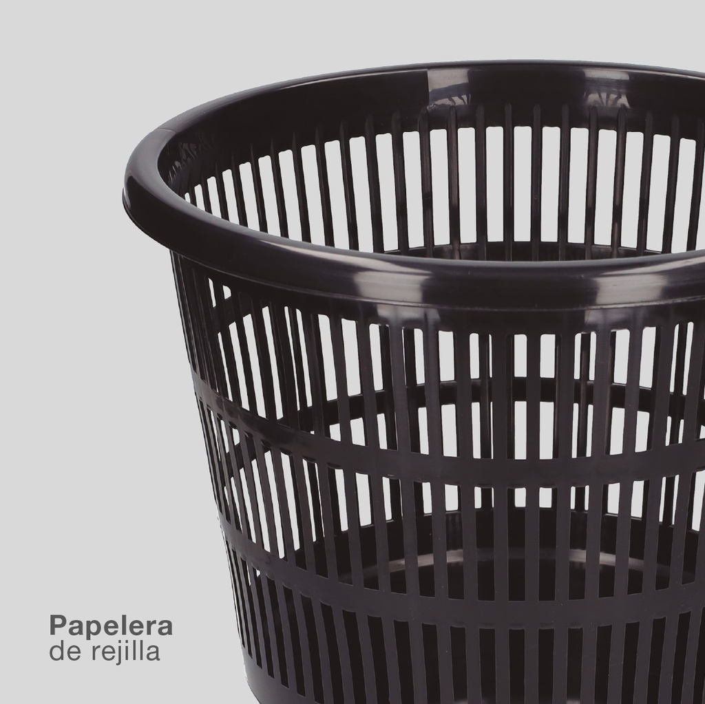 Papelera Rejilla 16 Litros fabricada en polipropileno en color negro.