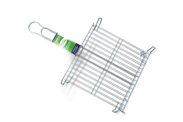 Fabricada en alambre de acero zincado, ofrece buena resistencia al calor y a la corrosión, lo que la convierte en una opción duradera para barbacoas al aire libre. Su estructura doble con sistema de cierre mantiene los alimentos seguros durante la cocción, facilitando un asado uniforme por ambos lados.