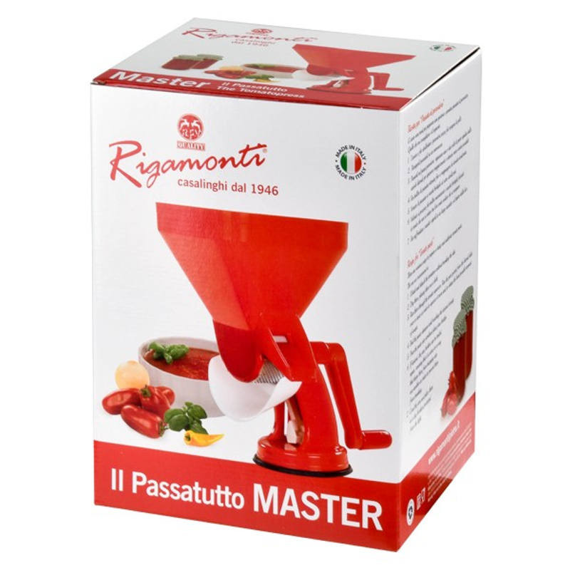 La Tomatera con Bandeja Rigamonti dispone de un práctico recipiente que te hará más fàcil la conserva. Trituradora de tomates naturales. Muy resistente y fácil de manejar y limpiar. Fabricada en polipropileno. Prensa aproximadamente 50kg/hora. Además dispone de una ventosa para sujetarla en superficies planas, secas y limpias.